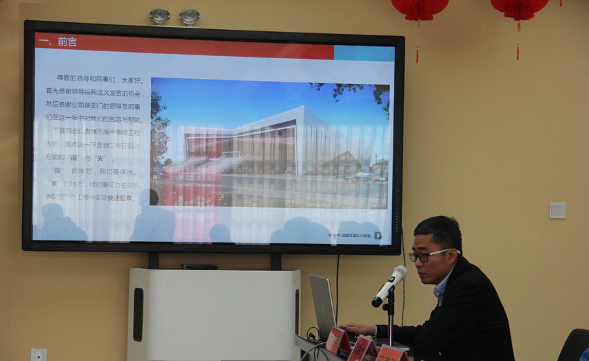 首先,全體員工共同宣讀公司誓詞,一起重溫了三新精神和核心價值觀:我們是三新人,以科技興企、產(chǎn)業(yè)報國為己任,發(fā)揚“求實、協(xié)作、勤儉、創(chuàng)新”的企業(yè)精神,志創(chuàng)國內(nèi)一流建筑科技企業(yè),三新的事業(yè)是我們大家的事業(yè),我們?nèi)σ愿埃啦谎詳。非笞吭剑删妥晕摇:榱琳R,鏗鏘有力的聲音回蕩在公司禮堂,我們的自豪感和責(zé)任感油然而生。