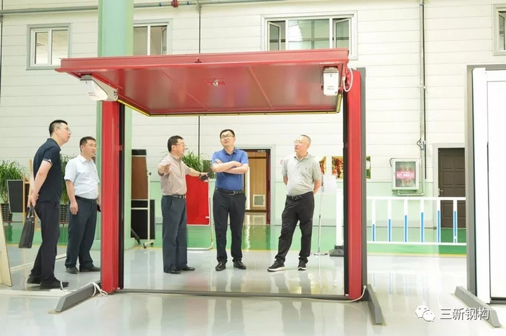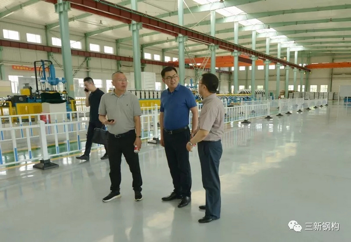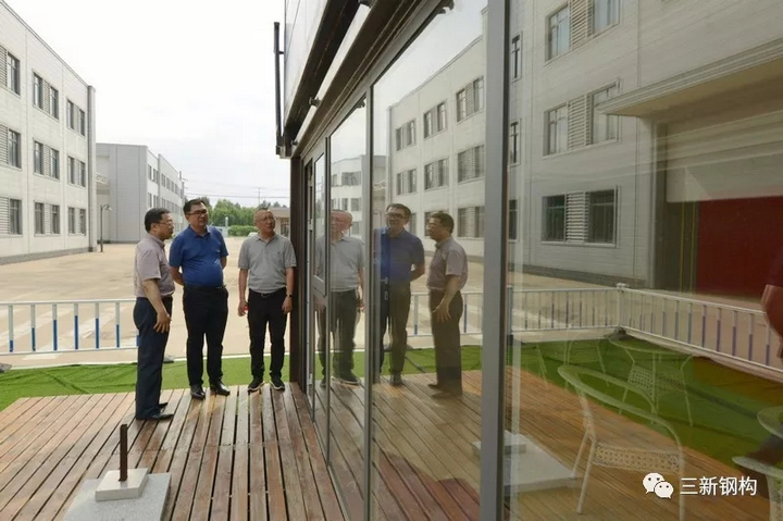 在接近兩個小時的調研過程中,住建廳領導與洪長禧總經理就技術創新及產業發展等話題進行了熱烈的交流和探討,對公司提出了具體的建議和希冀。曹廳長在了解到三新從公司落地沈陽到生產基地的建設,至今一直致力于科技創新,產品和產業的改造升級,并持續投入大量資金進行研發,從國外購買了大量世界頂級的生產裝備等情況時,對三新的創新理念和投入由衷的贊嘆,指出技術領先是核心競爭力,是企業發展壯大的基石和保證。洪總表示三新公司的宗旨就是“志創國內一流建筑科技企業”,這些年三新的發展離不開省住建廳等部門的大力幫助和支持。如今發展裝配式建筑已經上升為國家戰略,所以我們堅信鋼結構裝配式建筑一定會有廣闊的發展空間和巨大的市場。為此,公司將在鋼結構裝配式建筑領域加快人才培養與引進,壯大科研隊伍,加速新產品、新技術研發。力爭在構件式裝配式建筑領域取得進一步的創新突破,同時在模塊化建筑方面加速前行,力爭在移動、折疊房屋技術等方面走在國內前列。公司未來5年的發展將駛入快車道,力爭到2025年成為國內鋼結構裝配式建筑行業龍頭企業。同時作為國家首批裝配式建筑產業基地、國家裝配式鋼結構建筑產業技術創新聯盟常務理事單位、沈陽市裝配式建筑協會會長單位,公司也理應具有回報社會的責任與擔當,不遺余力為加快沈陽建筑業產業轉型升級,為沈陽的發展和騰飛做出應有貢獻。