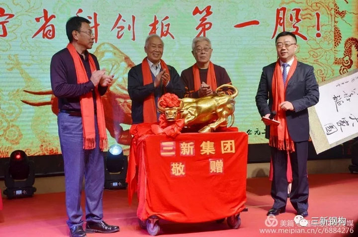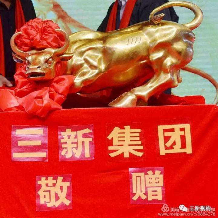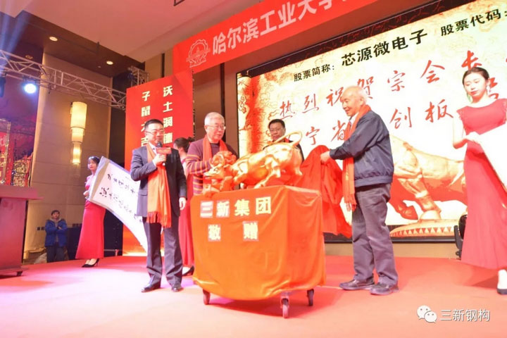 本屆校友會的承辦方,沈陽三新集團總經理,校友會副會長,本屆年會籌備組組長洪長禧先生代表沈陽校友特為宗會長及芯源微電子贈送銅牛一尊!祝芯源微電子財源廣進,牛市長紅!