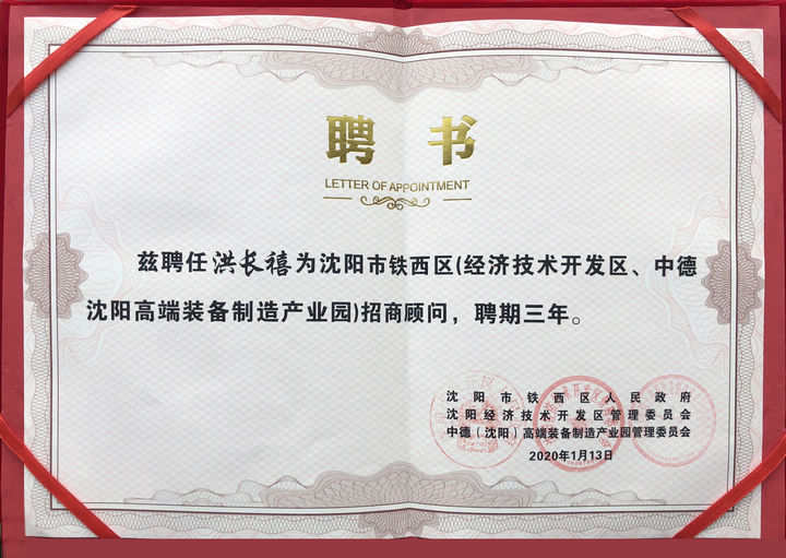 洪長禧總經(jīng)理被聘任為沈陽市鐵西區(qū)招商顧問