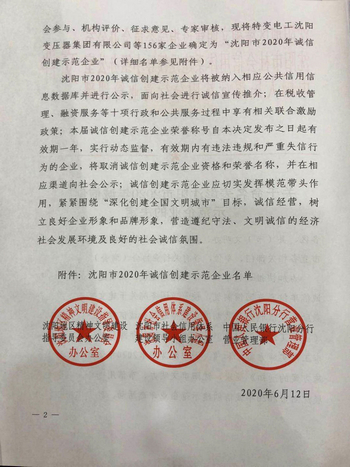 9月10日下午,沈陽市文明辦、市信用辦聯(lián)合召開“沈陽市2020年誠信創(chuàng)建示范企業(yè)”表彰大會。我公司榮獲“沈陽市2020年誠信創(chuàng)建示范企業(yè)”稱號。