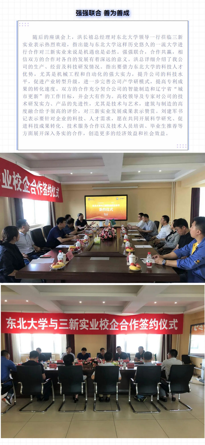 春華秋實,碩果滿園——三新實業與東北大學簽訂校企合作協議