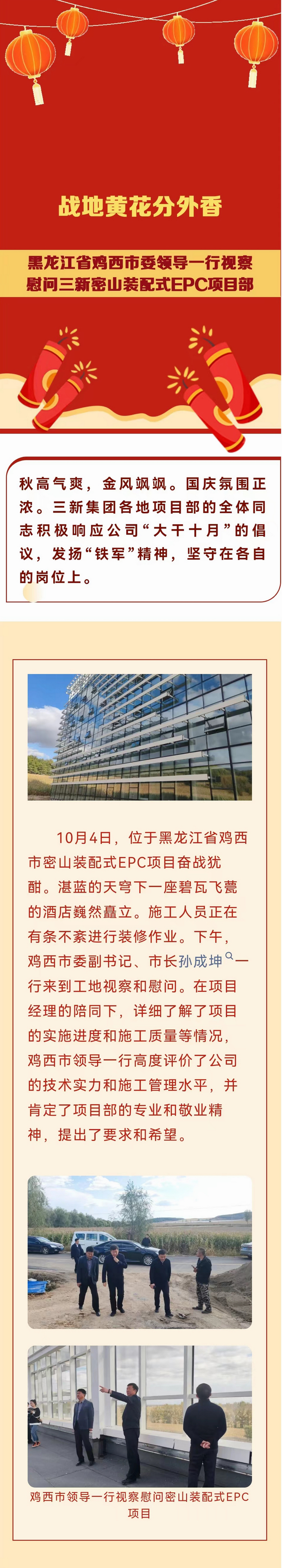 戰(zhàn)地黃花分外香——黑龍江省雞西市委領(lǐng)導一行視察慰問三新密山裝配式EPC項目