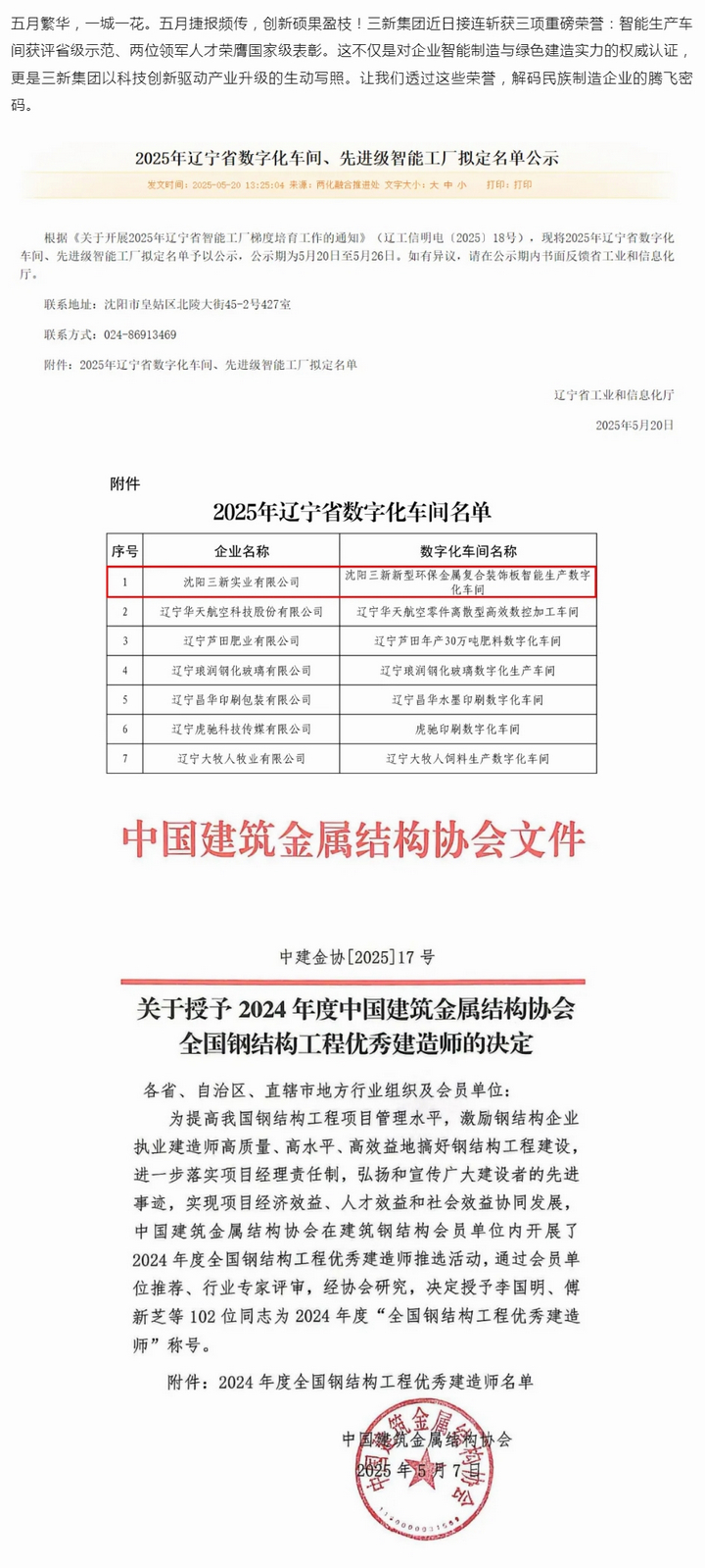 匠心智造 綠建未來丨三新集團(tuán)_雙喜臨門_彰顯數(shù)字遼寧建設(shè)硬實力