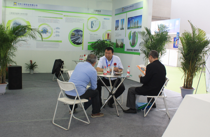 展會第一天,住建部總工程師陳宜明、科技節能司司長楊熔,沈陽市市委書記曾維、市長潘立國等領導先后親臨三新集團展位,分別與洪長禧總經理進行親切交談,對公司的產品和發展前景進行了詳細的了解并給予充分的肯定。