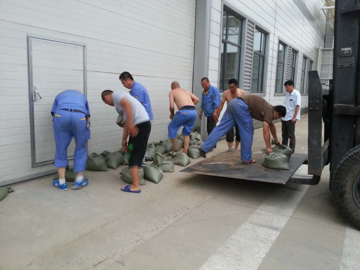 720日晚,為應對當晚的強降雨帶來的洪水威脅,公司啟動了防洪應急預案。公司組織生產基地生產技術部大部分員工及工程部、綜合管理部和供應儲運部部分員工,進行了防汛抗洪的準備工作。當晚22時左右,在大家的共同努力下,防汛工事全部構筑完成,使公司財產免受洪水威脅。在此次防汛抗洪行動中,所有人員顧全大局、視廠為家、不畏酷暑及蚊蟲叮咬,盡職盡責,圓滿完成任務。為弘揚這種精神,公司決定對參加此次防汛抗洪的人員給予通報表彰并發獎金