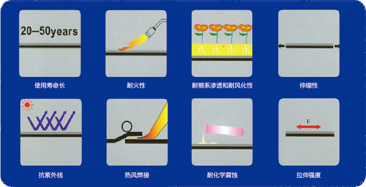 ◆、卷材采用熱風焊接,接縫剝離強度高,焊接便利且可靠;