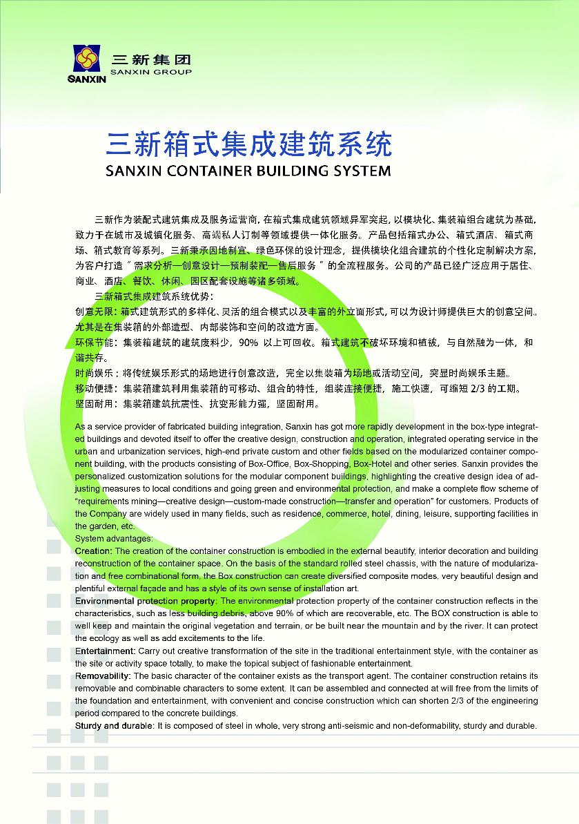 • 三新——綠色建筑領航者。新技術,新工藝,新材料,時尚,環保,快捷